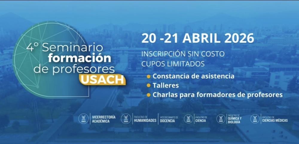 La Universidad de Santiago de Chile realizará los días 20 y 21 de abril de 2026 el IV Seminario de Formación de Profesores, un espacio de encuentro interdisciplinario que busca fortalecer la formación inicial docente mediante el intercambio de experiencias, metodologías innovadoras y articulación con el sistema escolar.